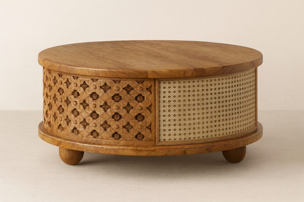 All our furniture is proudly handcrafted in India, from Saharanpur’s Sheesham carvings to Assam’s cane artistry and Rajasthan’s teak elegance. We create everything from Living Room, Bedroom, Dining, Office, Temple, Outdoor, and Décor furniture, using Sheesham, Teak, Mango, Assam Cane, Bamboo, and Mixed Wood. Every piece reflects the heart of Indian craftsmanship, made in India, Crafted with Soul.