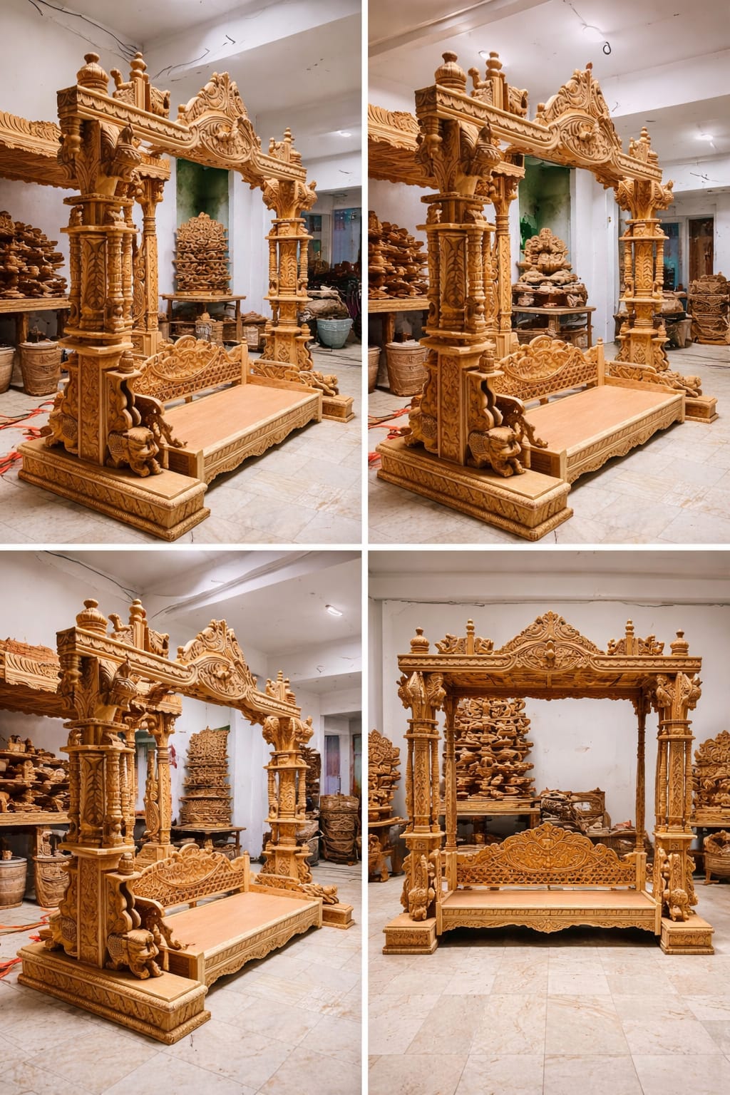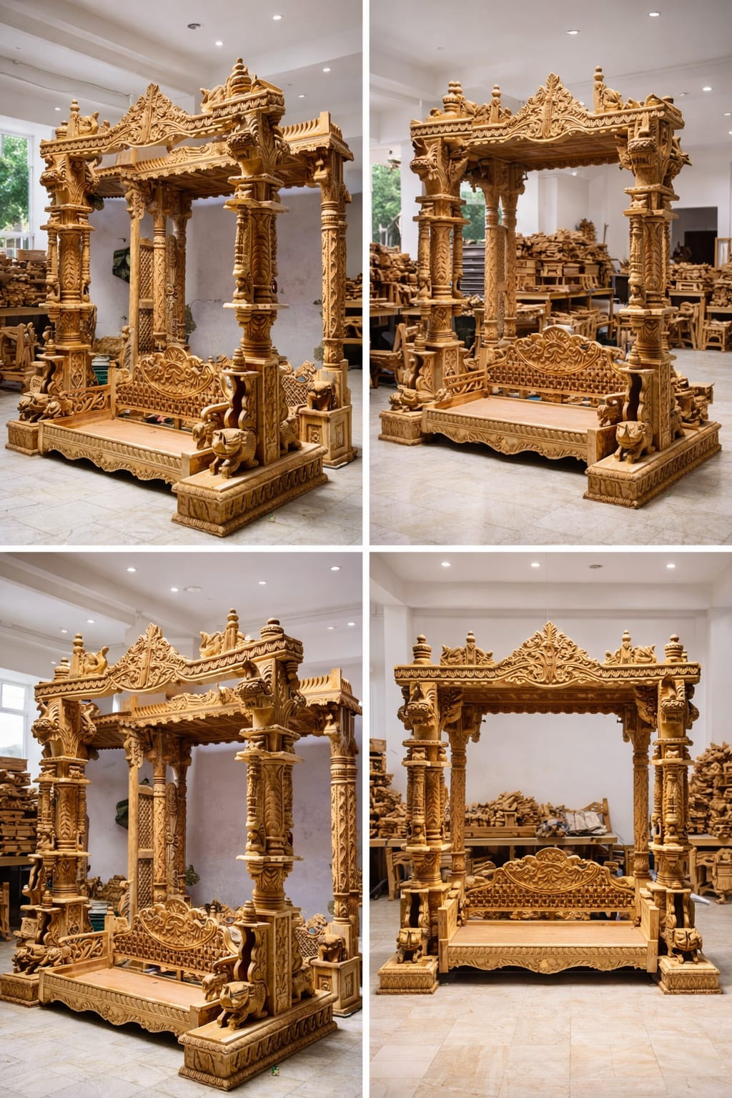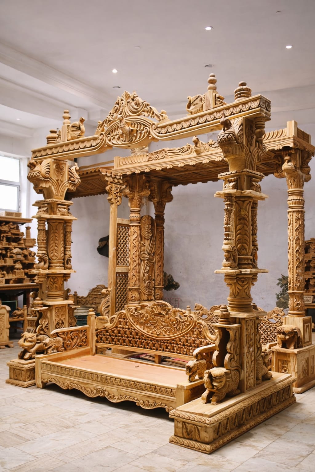 • Carving: Fully Hand-Carved (Pillars, Canopy, Backrest)