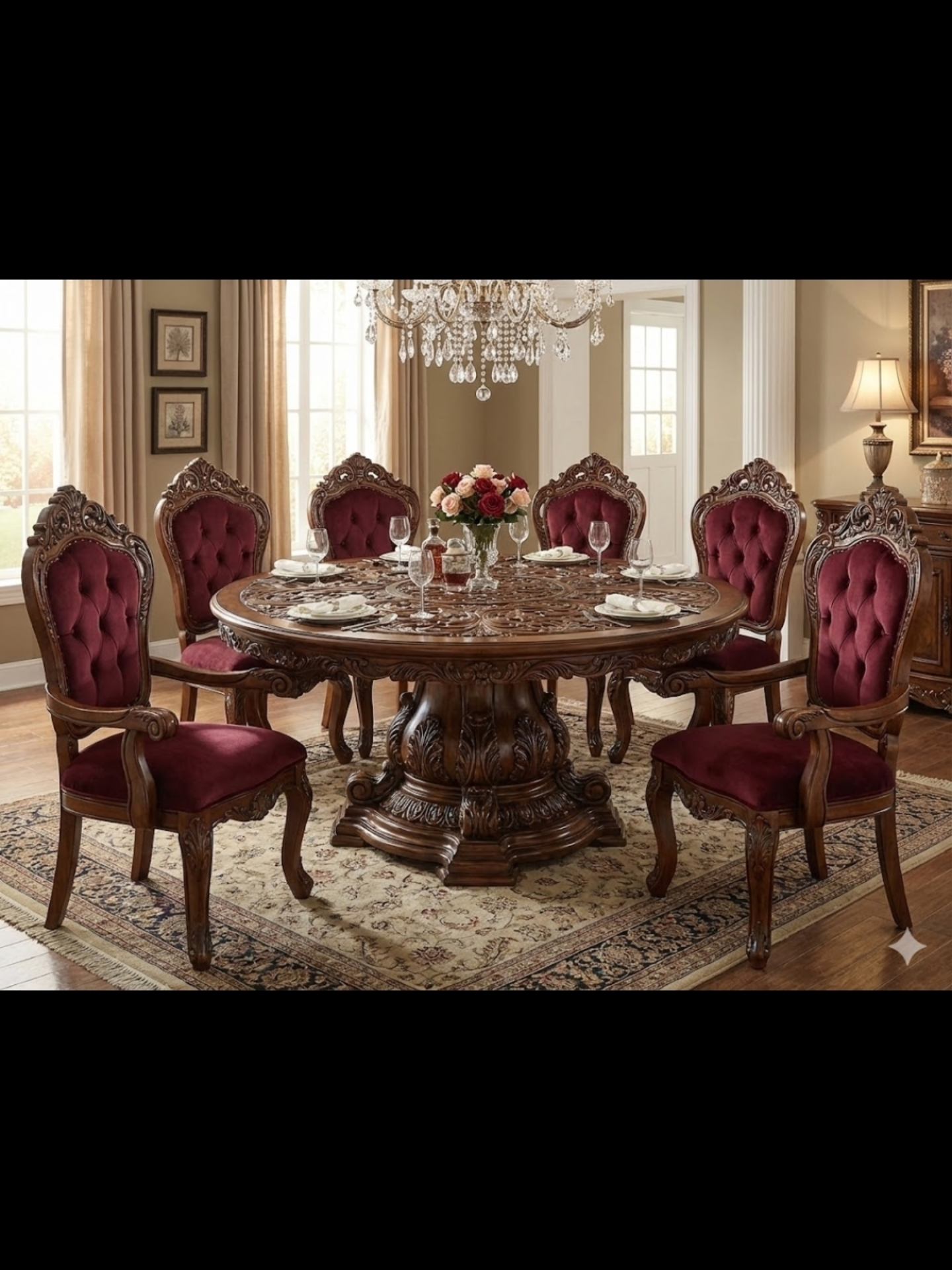 Each piece is carefully handcrafted with intricate detailing to create a royal dining experience. Built to last for generations, this set transforms your dining area into a space of refined beauty and comfort.