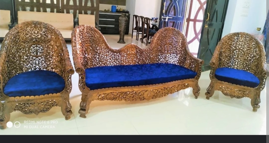 Apne ghar ko dijiye ek royal aur classy touch with the VintCaneCraft Royal Hand-Carved Sheesham Wood Sofa Set (3+1+1). Saharanpur ke skilled artisans dwara banaya gaya yeh pure handcrafted sofa set traditional Indian artistry ko modern comfort ke saath blend karta hai. Har piece par ki gayi floral aur leaf carving isse ek truly luxurious statement banati hai—perfect for living rooms that deserve something special.