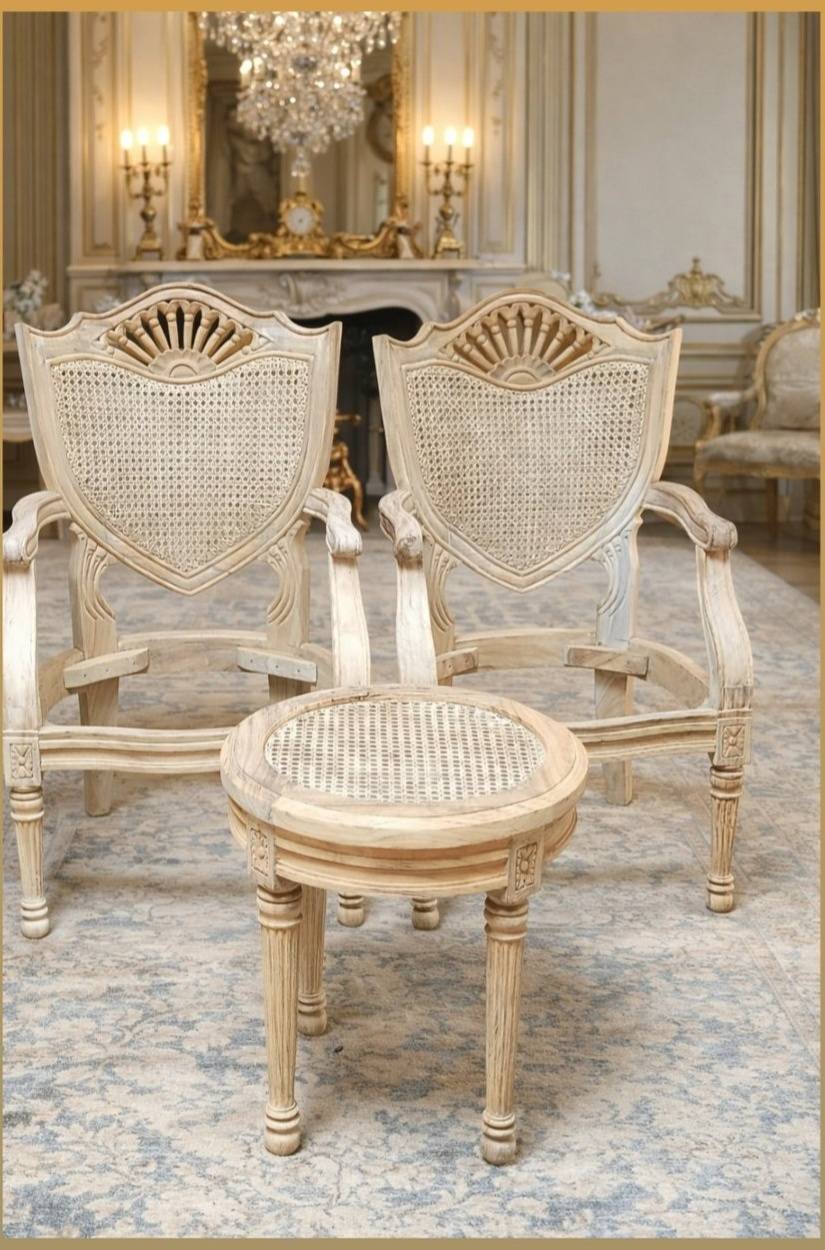 The VintCaneCraft Signature Cane Seating Set is thoughtfully crafted to celebrate traditional craftsmanship with a modern luxury touch. Made from premium solid wood and enhanced with handwoven natural cane detailing, this seating set offers durability, comfort, and visual elegance.